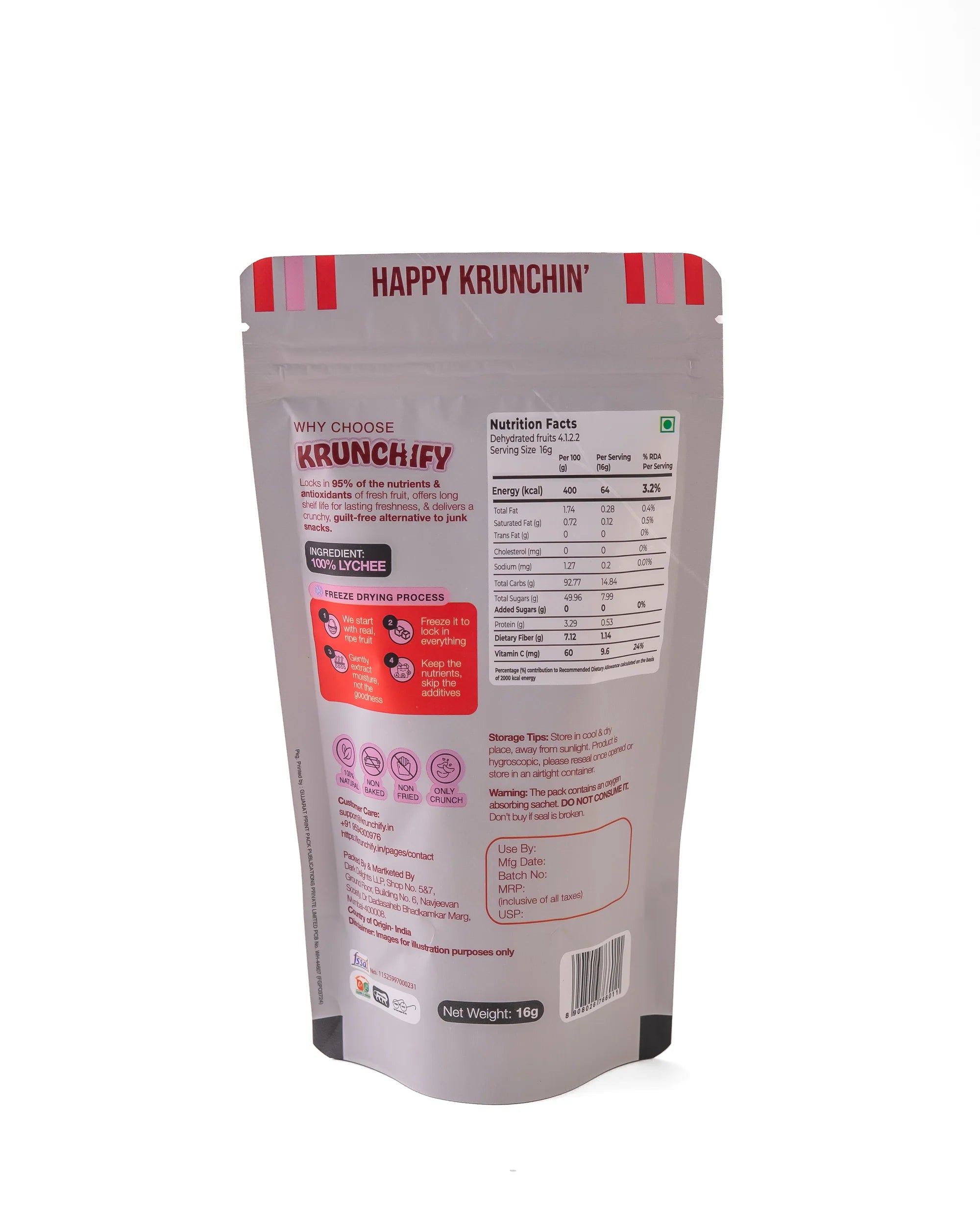 Savor the exotic sweetness of Lychee in a crisp, bite-sized form! Krunchify Freeze-Dried Lychee keeps the fruit’s natural flavor, aroma, and nutrients intact, offering you a refreshing, guilt-free snack you can enjoy anytime, anywhere.